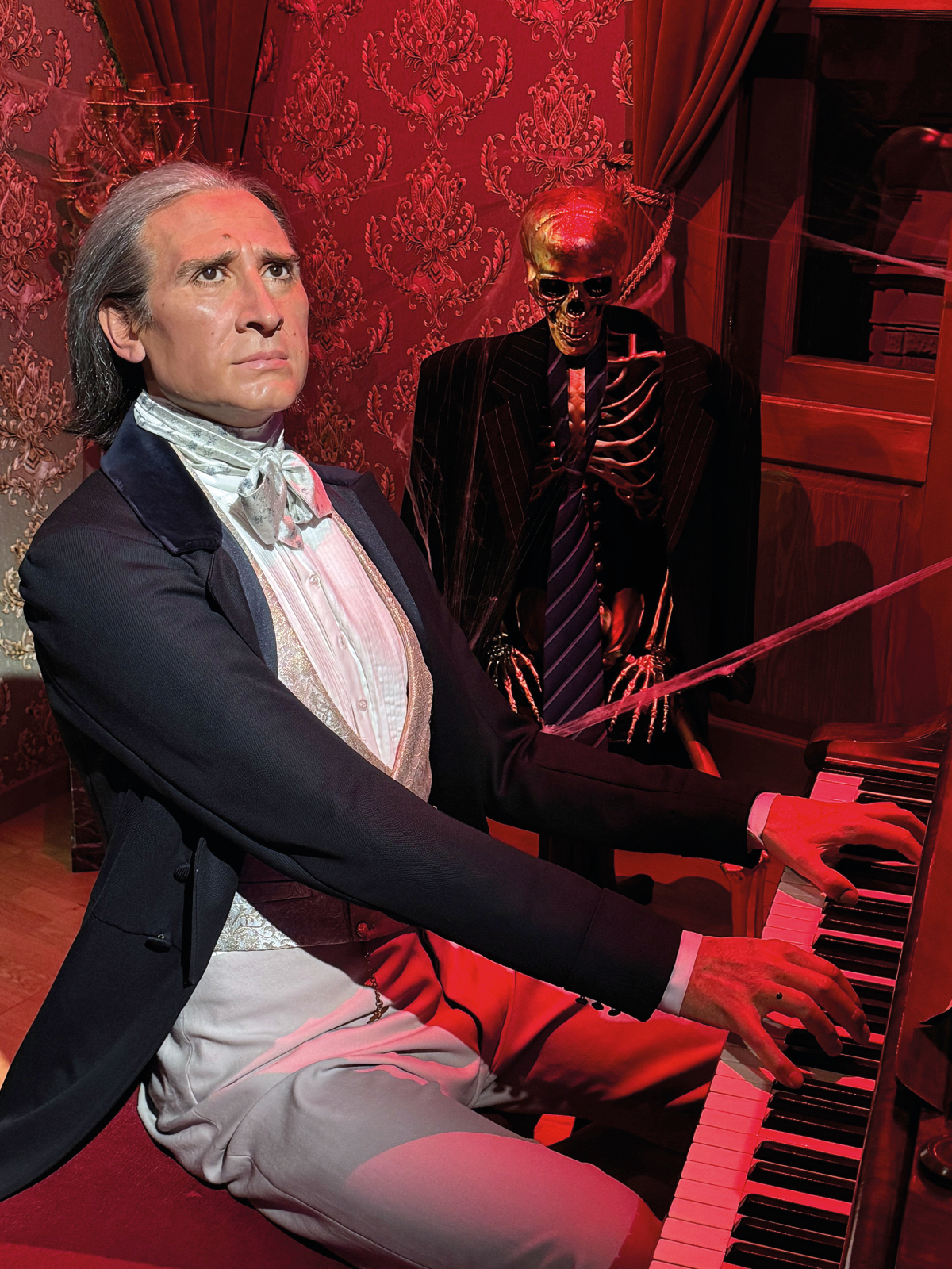 A viaszvilágsztárok illusztris társaságában retteghettek a látogatók, miközben a panoptikum elegáns termei egy estére sötét árnyak és kísértetek birodalmává változtak. A különleges dekoráció életre keltette a borzongás világát: minden sarokban történt valami ijesztő, a békés kávézó temetővé alakult, a folyosókon élőhalottak kóboroltak, és csontvázak riogatták a vendégeket.